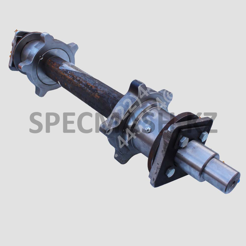 Вал натяжной транспортера КДМ 130Б-31.40.000. Комплектация — вал, звездочки — 2 шт. (105 мм — ширина звезды) и 2 опоры, без натяжителей.