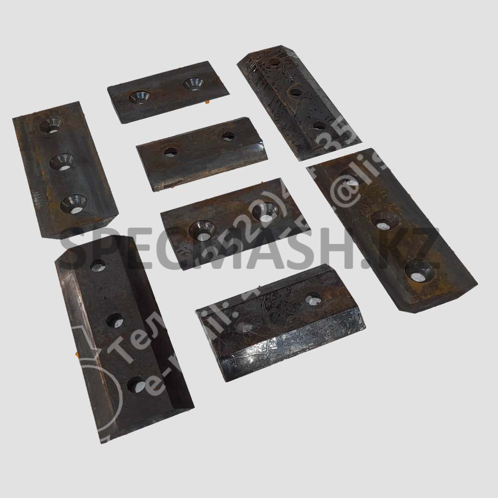 Комплект ножей для измельчителя веток ИВ-60 состоит из четырех коротких и четырех длинных ножей. Короткий нож размером: 99х60х10 мм, длинный нож размером: 150х60х10 мм.