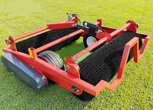 Буксируемая щетка к трактору обеспечивает непревзойденное качество вычесывания засыпного материала на газонах футбольных и гольф полей. Привод на колеса организует вращение двух цилиндрических щеток диаметром 400мм против хода движения.